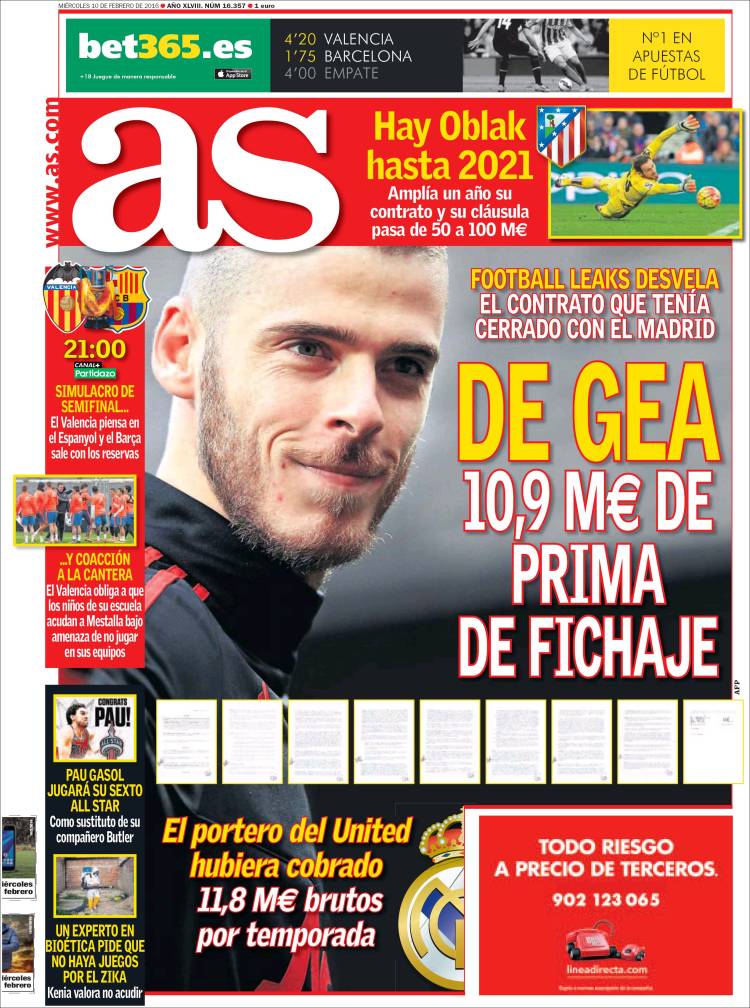 Anda Alfredo perturbado por una prima, y aunque sabemos desde el inicio de los tiempos que a la prima también se le arrima no van en este caso por ahí los tiros. Ojalá, de hecho, algún desahogo venéreo, endogámico o no, desinflara un poco el afán beligerante contra el Madrid de la Central Lechera. As lleva a su primera plana una de las filtraciones de Football Leaks y allá por Ouija Today alguno ha pensado en cortar el cable. Si es el rojo o azul está por verse, pero fiel a su estilo, la explosión está garantizada. As se escandaliza por la prima de fichaje que hubiera cobrado David De Gea -10,9 millones de euros- si el vetusto fax del Bernabéu hubiera funcionado aquel día como debiera, o si los Diablos Rojos no se la hubieran jugado a FloPer matando moscas con el rabo desde el Averno. Es una cifra importante, sin duda, sobre todo para cualquier mileurista o mediopensionista que nos lee y que también les escribe desde esta condenada sección bendita. Sin embargo, parece ser una prima relativamente habitual en las grandes transacciones futbolísticas internacionales. Al menos en el Football Manager 2016, el juego de ordenador que nos trajeron los Reyes, no resulta un pago disparatado. Hay primas y primas. Y si Neymar tiene una sensual hermana carnavalera, no veas cómo está la prima de su padre. Esa vale 40. Sí, sí, lo sabemos, somos muy pesados con este tema; pero es que el otro día hubo un desfile blaugrana por la Audiencia Nacional y había que tirar de lupa detectivesca para encontrar rastro de la noticia en las primeras planas.