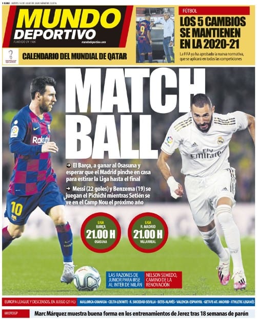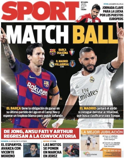 En la otra orilla coinciden en una primera plana donde aparecen los máximos representantes del ataque de ambos aspirantes al título, pero con un titular que sólo puede referirse a uno de ellos. Porque, entre Madrid y Barça, solo uno de ellos tiene hoy un match ball. El otro solo puede aspirar a salvarlo, con la certeza de que habrá otro, en el mejor de los casos.