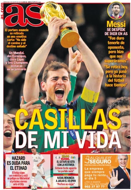 ¿Se han fijado en que, el día de su despedida, Iker no va con la equipación del Madrid en ninguna de las portadas?