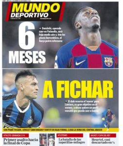 El que vuelve a la casilla de salida es el desdichado de Dembelé y MD lo saluda con efusividad perturbadora. Seis meses de baja dicen con letras gordas. A fichar, celebran. Curiosos tendones los de Dembele que la primera vez que se rompen tardan tres meses y medio en curarse y la segunda medio añito.