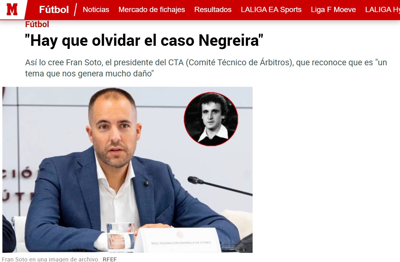 El abogado de la Federación Española de Fútbol, organismo del que dependen los árbitros, no sé si conviene recordarlo, no hizo una sola pregunta a Joan Laporta. Ni una. Qué XXXX vergüenza. Para ellos ya ha pasado todo, nos han vendido que se ha regenerado el Comité Técnico de Árbitros y que conviene mirar hacia delante. El nuevo presidente del CTA, Fran Soto, intervino recientemente en la COPE para animarnos directamente a todos a “olvidar el caso Negreira”.