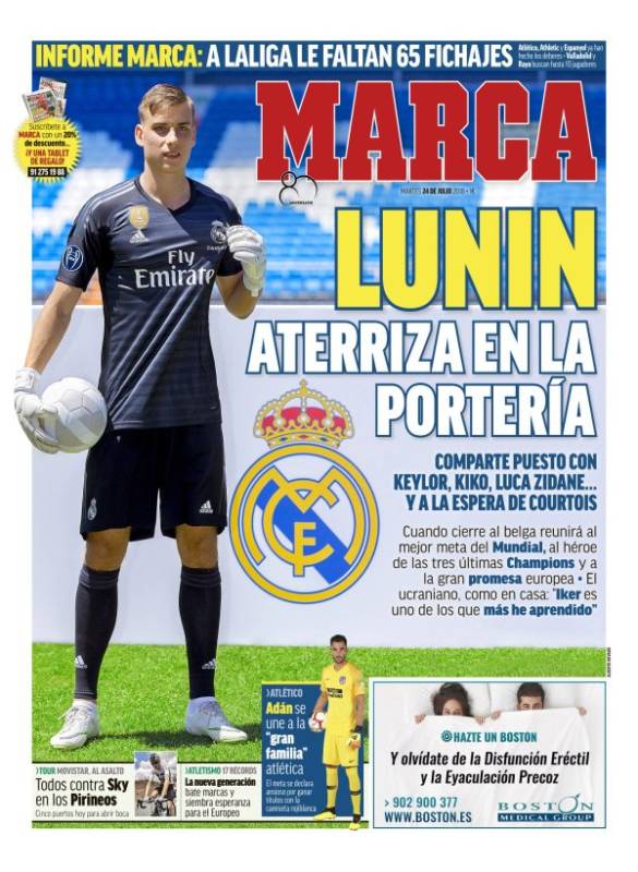 En Madrid, mientras tanto, poco que llevarse a la boca. Lunin fue presentado y la prensa nos recuerda que hay muchos porteros y que alguno no tiene sitio de cara a la próxima temporada. Seguramente Florentino Pérez y Julen Lopetegui ya lo sepan, pero les haremos llegar el 'AS' y el 'Marca' por si se les ha escapado ese pequeño detalle.