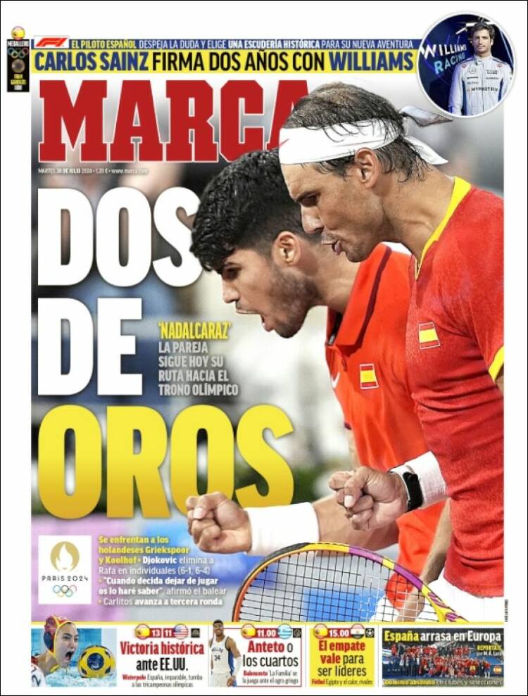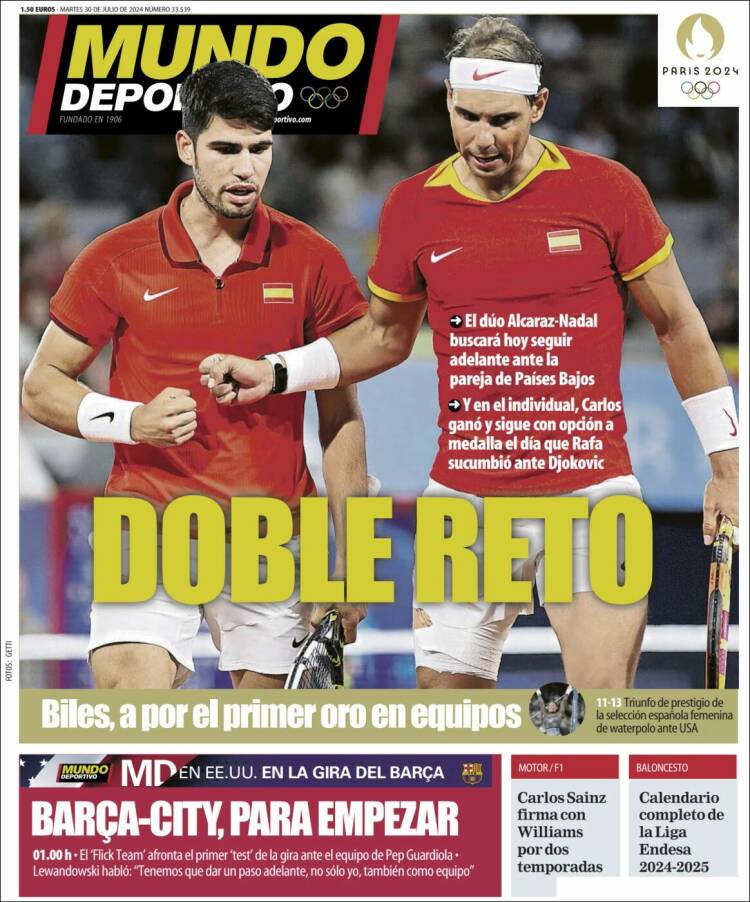 Por lo demás, qué deciros. Ya sabéis que Nadal perdió ante Djokovic en un partido emocionante, pero sigue teniendo la opción de medalla en dobles, junto a Alcaraz. El resto de noticias olímpicas vienen servidas por el resto de portadas del día, un día que os deseamos sea propicio y entretenido, que no es poco.