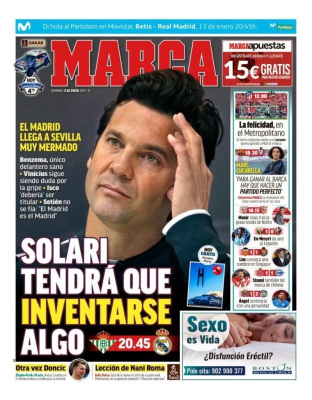 Según Marca Solari deberá inventar algo. Que el Señor nos pille confesados. Probablemente Setien nos vuelva a dar una paliza desde el banquillo. Como de costumbre.