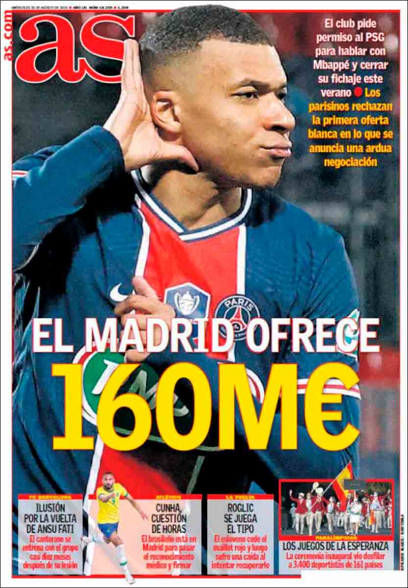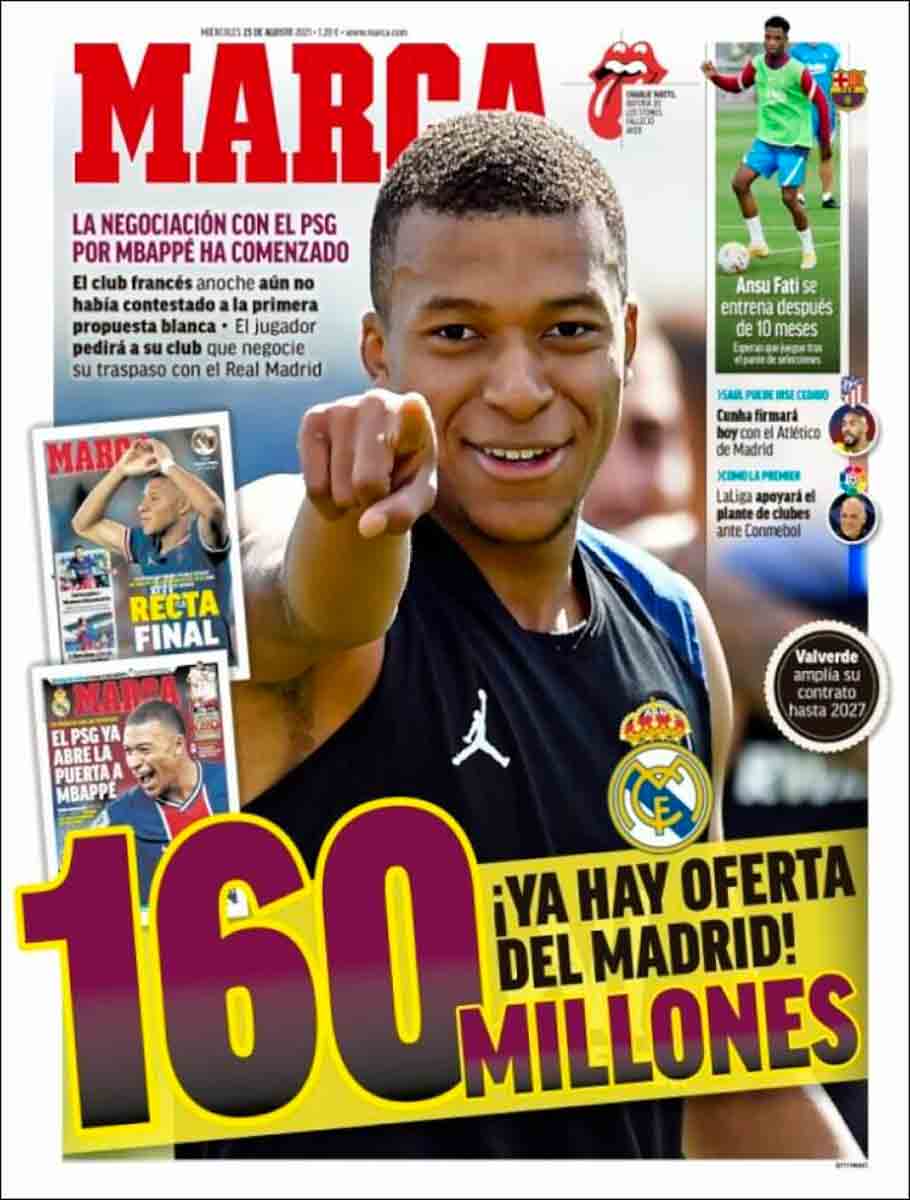 Reguilón (30) + Achraf (60) + Varane (40) + Odegaard (50) = 180, que es en lo que se va a cerrar el fichaje de Mbappé, que sí quiere jugar en el Madrid.
