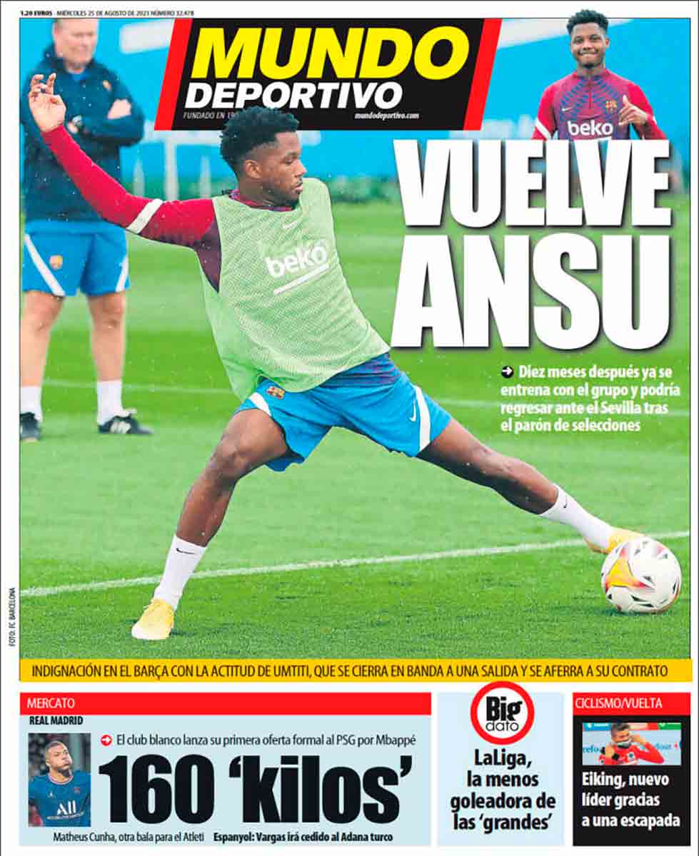 De la prensa cataculé, aparte de unirnos a los buenos deseos para ese magnífico delantero que es Ansu Fati, nos quedamos con esa “indignación” con la “actitud” de Umtiti, que “se cierra en banda” y “se aferra” a su contrato (leemos la banda amarilla de Mundo Deportivo). Qué mala persona Umtiti, y qué ciudadano tan excéntrico. Aspirar a cumplir con lo firmado, a quién se le ocurre. A la gente de Mundo Deportivo, implícitamente, se ve que le parece súper comprensible la “indignación” del Barça ante un tío que “se aferra” a lo rubricado. Algún día escribiremos en profundidad sobre el alineamiento de la prensa catalana con las diferentes modalidades de mobbing que está llevando a cabo el Barça para soltar lastre. Apelotante, amics.