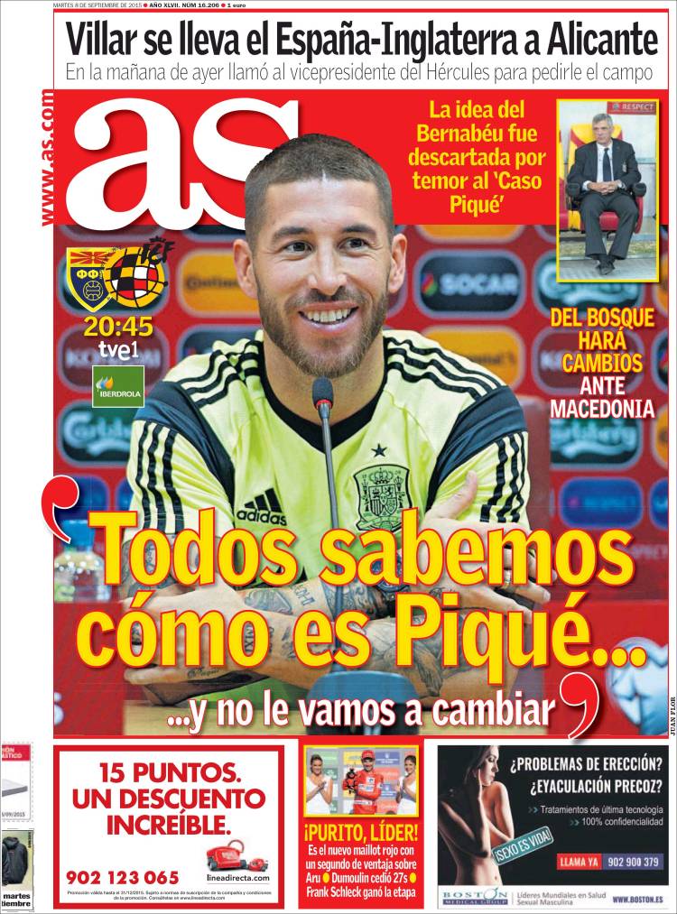 Cómo estarán las cosas para que nuestra portada favorita del día sea la de As, y lo decimos sin la menor ironía. Relaño capta de verdad la esencia de las declaraciones de Ramos ante la prensa, siendo de hecho el único de los cuatro medios que lo hace.