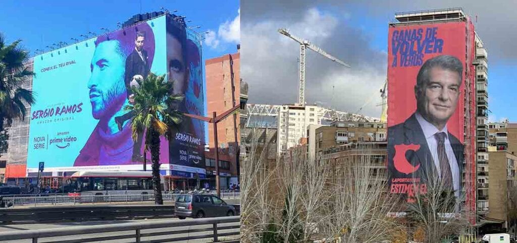 A mi no me molesta en absoluto. No es más que campaña electoral. Eso sí, apesta a mentalidad de segundón. Lo de SR fue publicidad de Amazon prime, para vender. Dice mucho de la mentalidad del Barça que necesiten poner un cartel frente al Bernabéu.