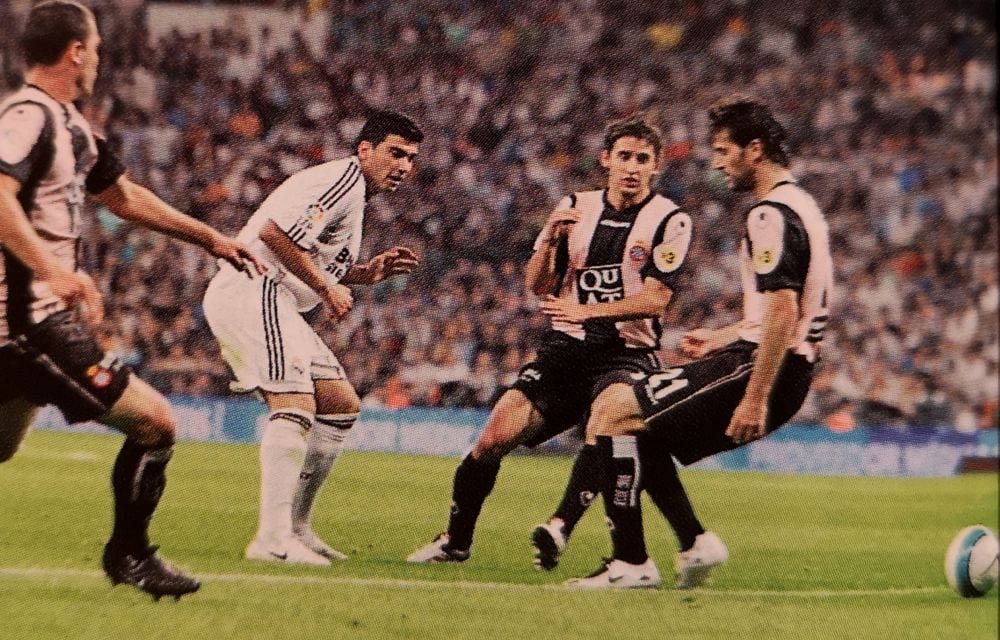 Otro instante recordadísimo de aquella Liga fue el choque ante el Espanyol en el Santiago Bernabéu. “El Rifle” Pandiani se empeñó en acabar con las opciones ligueras de los blancos con un hat-trick, pero la remontada merengue fue antológica. En el descanso, y con 1-3 en el marcador, Fabio Capello echó mano de Reyes que realizó una segunda parte fantástica al entrar por Guti. Primero logró el empate a tres con el exterior de su bota izquierda y en el ’89 fue el encargado de filtrar un pase milimétrico que se coló entre las piernas de Dani Jarque para que Higuaín superase a Kameni y llevara el éxtasis a las gradas.