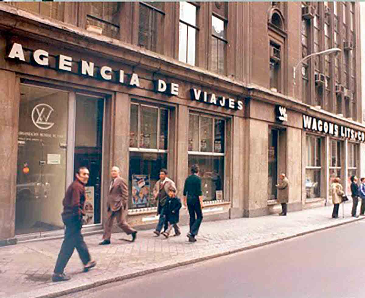 Imagen de la agencia de viajes Wagons Lits en la que trabajó José Senén. Calle Alcalá 23, esquina a la calle Virgen de los Peligros. (1970)