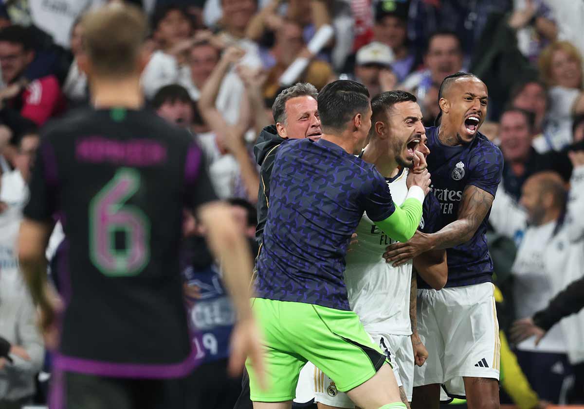 Como el Madrid y el Bernabéu estaban en trance, ese centro del segundo lo podía haber dado Rüdiger, Lunin o Ancelotti. Habría dado lo mismo y a nadie le habría parecido extraño. El mérito de Joselu es conocer su sitio, algo que lleva desde cadete aprendiendo