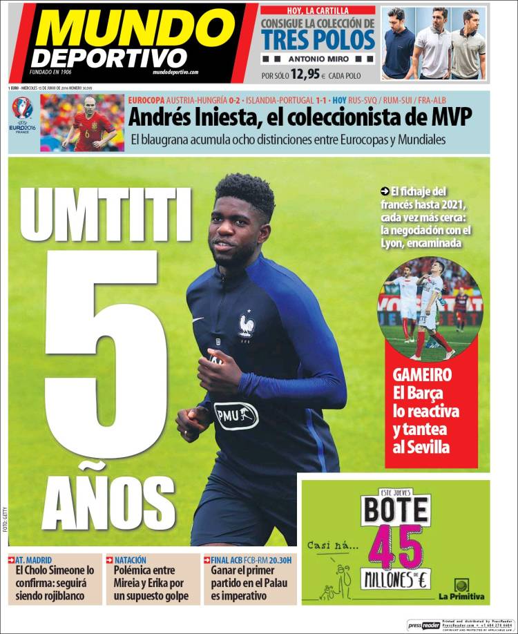 Las primeras planas de la prensa deportiva del rinconcito nos dejan hoy tan mustios como un pingüino en Chiclana. Tras espantar de nuevo la efigie de Fray Andrés de Fuentealbilla, publicado en enésima portada, nos da mucha pereza comentar quién es el Umtiti ese que dicen ha fichado el Barcelona de los Chygrinskys. Nos resulta más divertido detenernos en la exclusiva del EUPDQNREPEACUPMEI (El Único Periódico Deportivo Que No Recogió En Portada El Atentado Contra Una Peña Madridista en Irak).