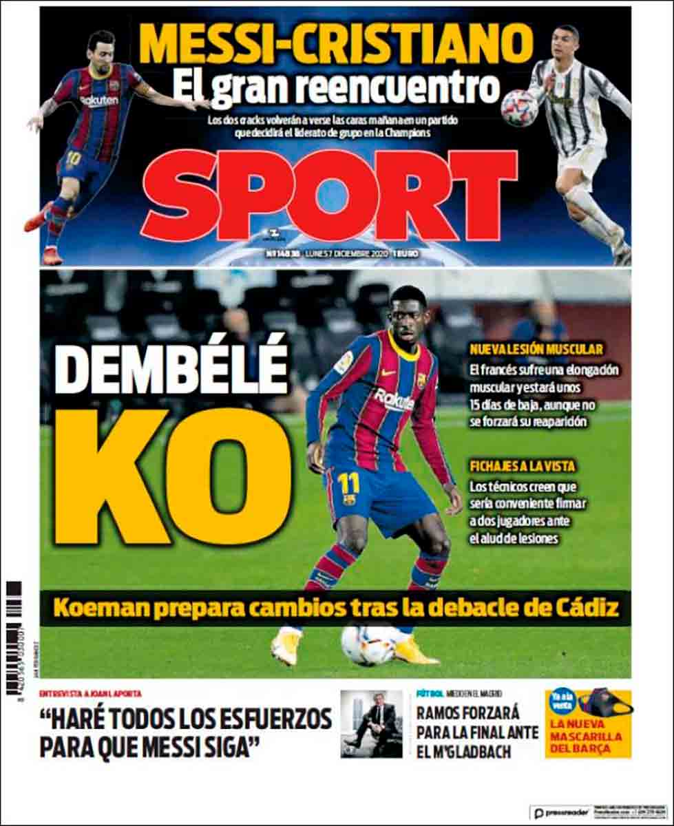Por su parte, Sport hace sangre también (sigue siendo broma) con la enésima lesión de Dembélé. ¿Imaginan la que estaría liada, casi diariamente, en As y Marca —en particular en As— si en el Real Madrid languideciera desde hace cuatro años, entre lesión y lesión, un tipo que costó 150 millones de euros? Para calibrar la que se montaría diariamente en las portadas de la prensa capitalina en una situación así basta con recordar la que se montaba con las lesiones de Bale, a pesar de que dichas bajas no impedían al jugador protagonizar noches memorables que acababan en la consecución de Champions Leagues, Copas del Rey y otros títulos que también llevaron su sello. La comparación entre el trato mediático de las lesiones de Bale (o ahora de Hazard) y el que reciben las desventuras del bueno de Ousmane supone un contraste todavía más marcado que el que existe en el trato a Zidane y a Koeman, un recién llegado el segundo, un recontraputísimo héroe el primero.