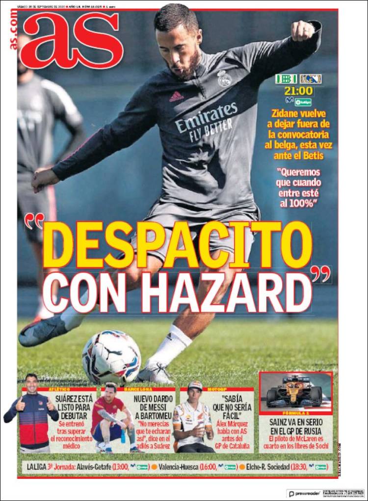 Quien necesita amor, un amor como el de Koeman y Pedri, es As. Para As la noticia del día es Hazard, que no va convocado. Cómo les gusta la casquería. No estaría mal que volviera Hazard para marcar treinta goles. Imaginamos la redacción de As como la casa de Fagin, el “patrón” de Oliver Twist y los niños rateros siempre dispuestos a meter la mano con intenciones en el Real Madrid.