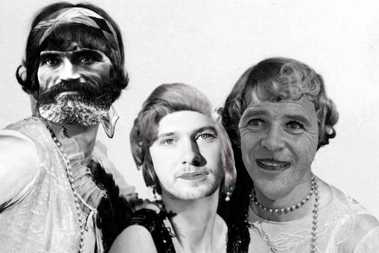 Veinte minutos después, Pancho y Luka maquillados, vestidos de mujer y con una botella de whisky y vasos con hielo en las manos simulan estar bebidas y entran en el departamento de Kubala, Samitier y los forzudos.