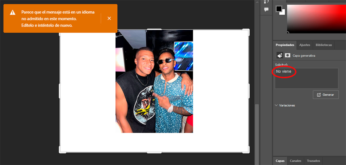 La herramienta de Photoshop que genera la estampa cuenta con un campo en el que podemos introducir un texto para orientar en un sentido esta generación y la primera petición es obvia: «Mbappé viene al Real Madrid». El resultado es el siguiente:
