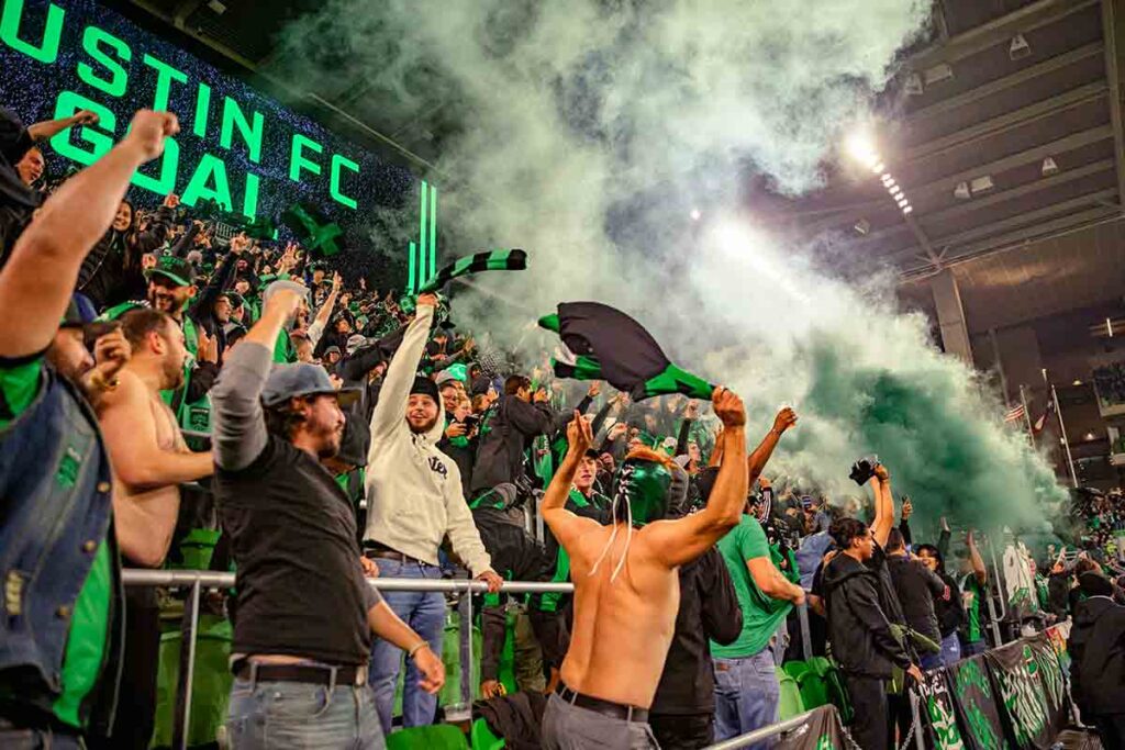 Otro punto negativo es que siempre que el Austin FC marca un gol en casa, se encienden unos cegadores focos verdes colocados alrededor del estadio y, durante un buen rato, el campo se tiñe de un espantoso color kiwi. Es como estar en una rave puesto hasta arriba de metadona con sabor a lima-limón. El efecto es irritante y hortera, y verlo repetido hasta cuatro veces durante un solo partido puede causar ataques epilépticos y arranques de ira descontrolada.