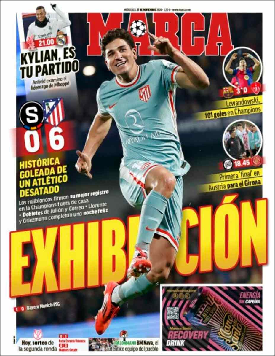 Hola a todos, amigos galernautas. Como de sobra sabéis, esta noche se juega mucho el Madrid (por los puntos, pero sobre todo por el prestigio) en su visita a Anfield. Al haber jugado ayer, también en Champions, tanto el club cliente de Negreira como el Atlético de Madrid, la prensa de la jornada no atiende sin embargo a la previa de partido tan señalado, sino más bien a lo acontecido en ambos encuentros de anoche.