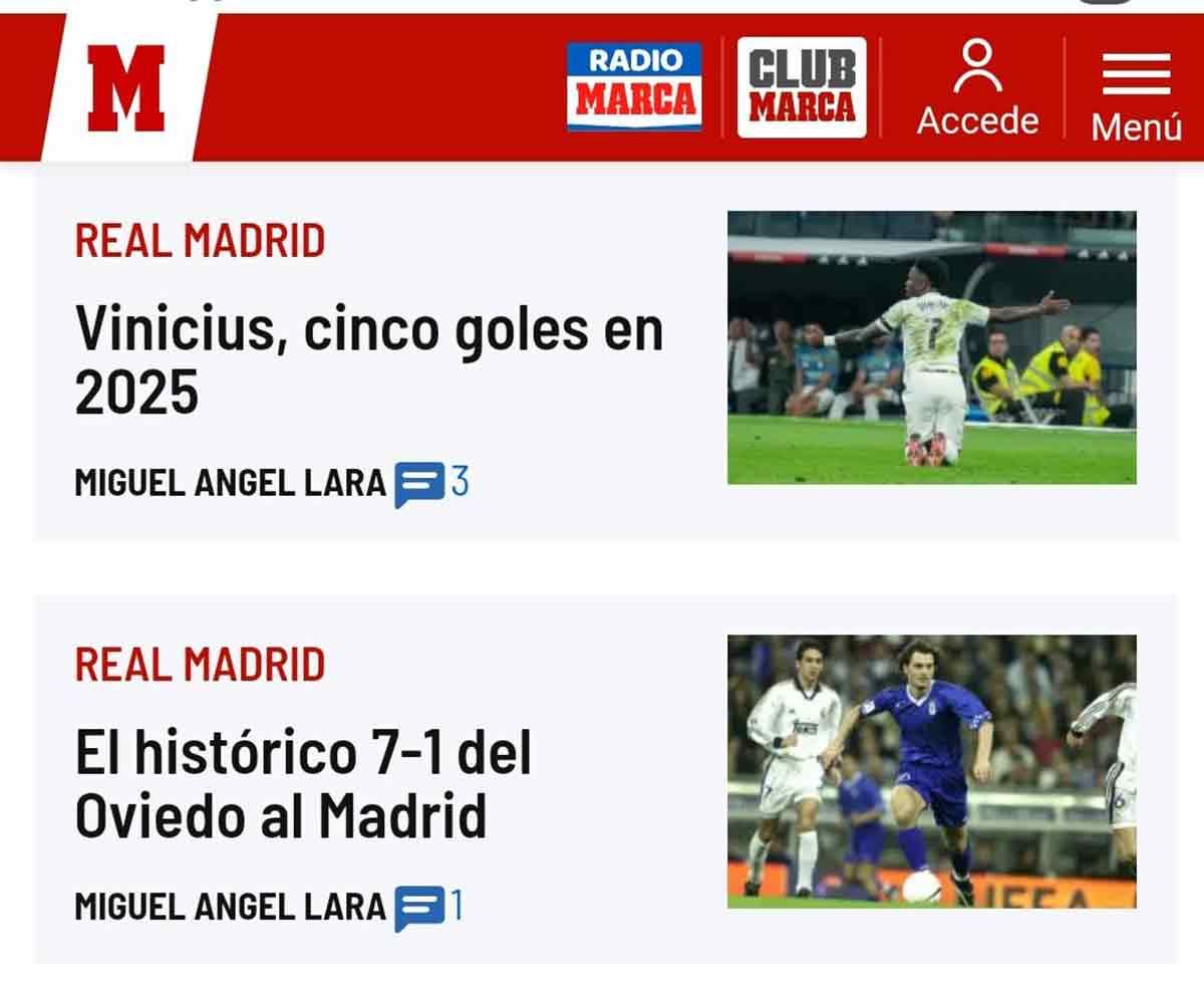 Hola madridistas desde Barcelona , uno nace y luego hace , de vergüenza lo del diario culé Marca = a Farsa , el tercer gol es en propia puerta del Oviedo y dicen q el bluff del Yamalo ha participado , no más palabras señoría , saludos a la Galerna y decir q ser del Real Madrid es de lo mejorcito q hay . HALA MADRID .
