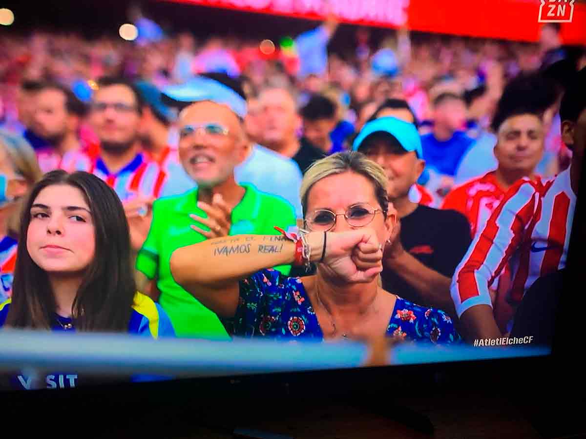 Amigos, sed como Fernando Carnerero, sed como Marca, ejemplo sin mácula de Central Lechera. Eso es el verdadero madridismo, y no el de esta aficionada que se encontraba ayer en el Metropolitano y tras el gol del Elche mostró su antebrazo con el lema: «HASTA EL FINAL ¡VAMOS REAL!». Fatal, defender a tu club jugándote el pellejo literalmente en un campo hostil y peligroso no es madridismo. Lo de Marca, sí. Eso dicen los antimadridistas, y ellos siempre llevan razón, ¿no? Además, no puso la coma del vocativo.