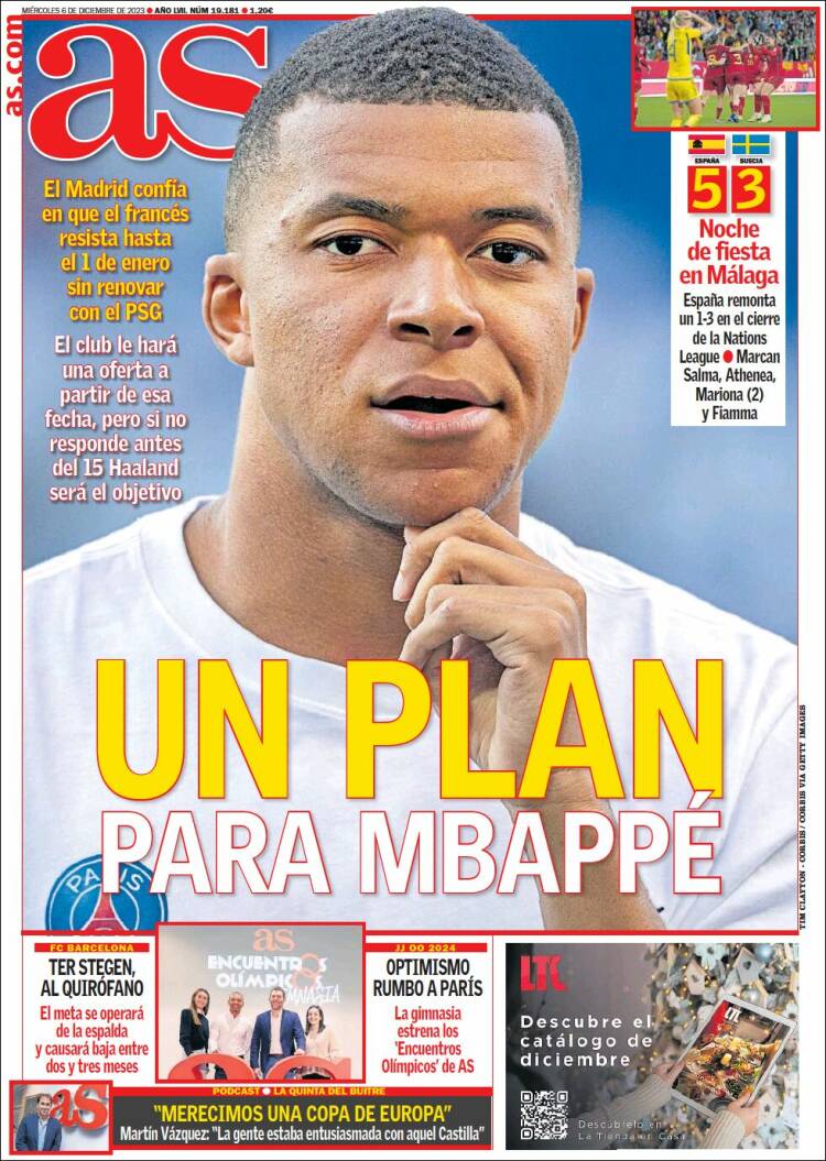 Por lo demás, poco que comentar sobre las portadas del día. Nos solaza el gran momento de Rodrygo, estamos hartos de especulaciones sobre Mbappé y deseamos, aunque juegue en la entidad deportiva más indigna de la historia del fútbol, la mayor de las suertes a Ter Stegen en su operación.