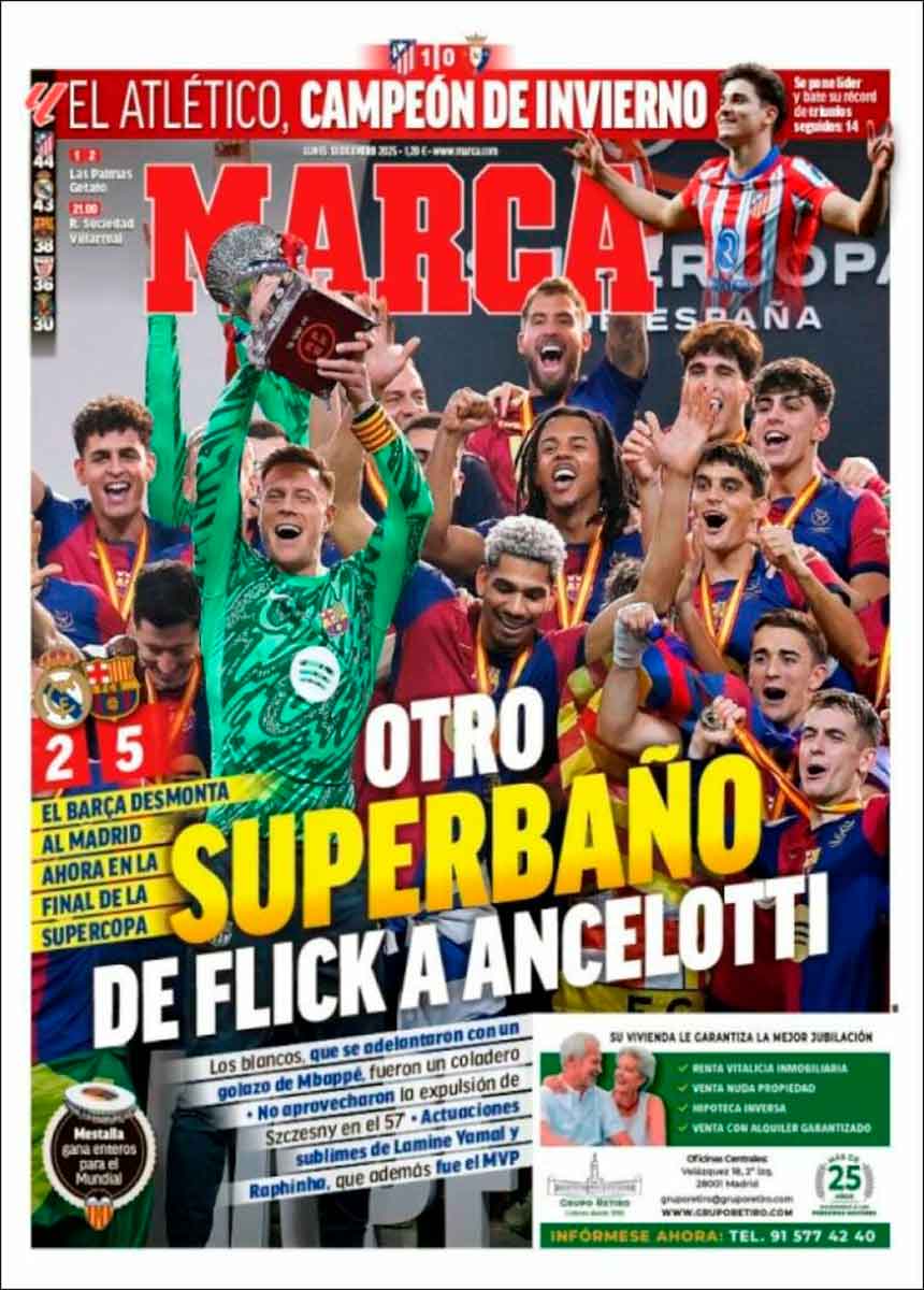 Buenos días. El Barça goleó al Real Madrid. Fue en la final de la Supercopa, pero no importa cuando lo leas. El aficionado se está acostumbrando a este oprobio. Pasa por las humillaciones del Barça como quien pasa la ITV, solo que las primeras son bastante más frecuentes. ¿Hacemos recuento? Habíamos ganado cuatro de los últimos cinco mal llamados clásicos, pero la buena racha se quebró con una goleada infame en el Bernabéu, una que recordó un pasado traumático. Pero por lo visto hay alguien ahí que no hace suyos los traumas de la afición, de suerte que el horror se ha repetido.