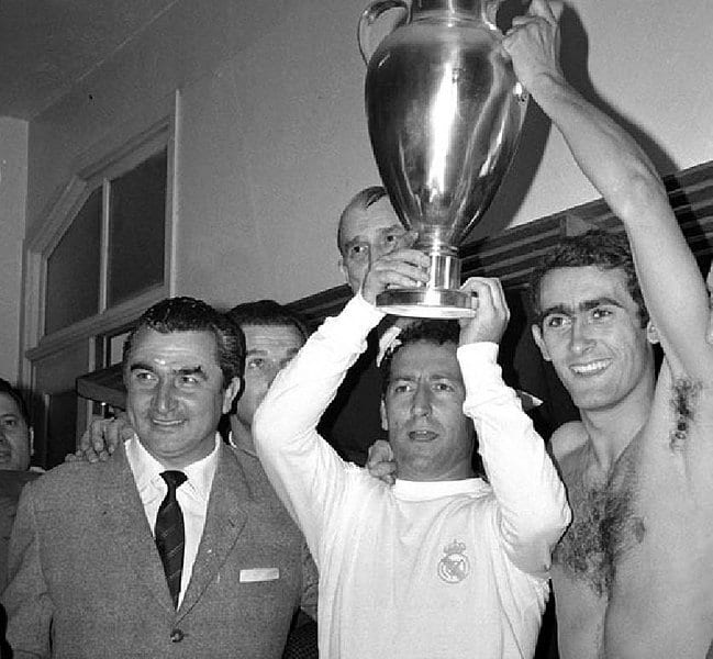 En esos cien títulos, hay producto nacional purasangre, hay frutos de épocas de austeridad, hay metal de opulencia, hay de todo. El Madrid es aún el siglo XX, completamente vivo, lo último que queda una vez muertos Isabel II de Inglaterra y Benedicto XVI. Pero también es el siglo XXI. La única gran época de sequía en toda su historia fue la postguerra, lo que viene a redundar en la impresión que siempre he tenido de que el Madrid, al ser lo mejor de la España moderna, sufre cuando la nación más sufre. Pero en la postguerra, el Madrid afianzó su patrimonio y lo convirtió en la base de su crecimiento. La fruta maduró tres lustros después, pero aun así, entre tanto, se ganaron algunas Copas de España, que congregaron en la estación de tren a la afición entregada, ansiosa por olvidar el dolor y la sangre de la guerra, por lavarlos en la pila de agua clara y pura de una ilusión colectiva. “España misma fuisteis vosotros, comandantes de todas las victorias, arcángeles del milagro en los pies y del santísimo talento sobre la hierba”, como le canta Manuel Vilas a los ingrávidos del blanco real: “Velázquez, García Remón, Zoco, Amancio, Santillana, Pirri, héroes de obreros españoles, enterrados en amarillas tardes de domingo”.