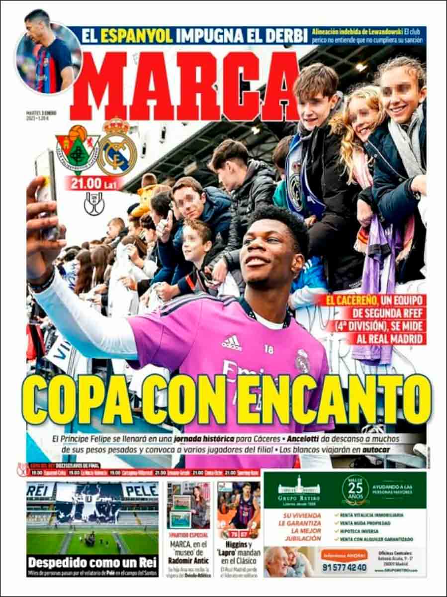 Las portadas, como esperábamos, no mencionan el asunto. Marca y As se centran en el partido de hoy frente al Cacereño.