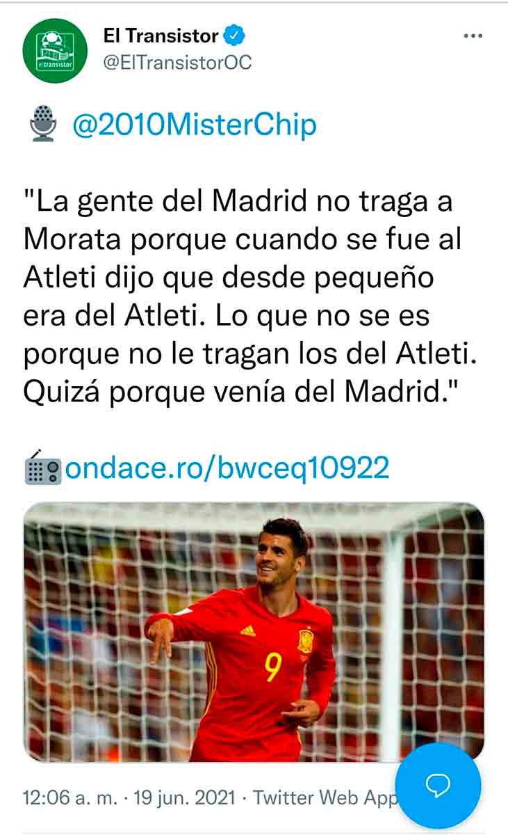 Todos con Morata, menuda campaña mediatica que tenemos montada aunque todos sabemos que si Morata fuese hoy en día jugador del Madrid no estaría en la selección. Lo mismo que Llorente, otro que no estaría si fuese jugador del Madrid.