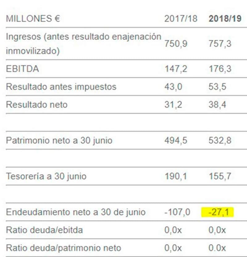 Y manteniendo su Deuda Neta REAL en 0. Y no en 1.000 millones y subiendo.