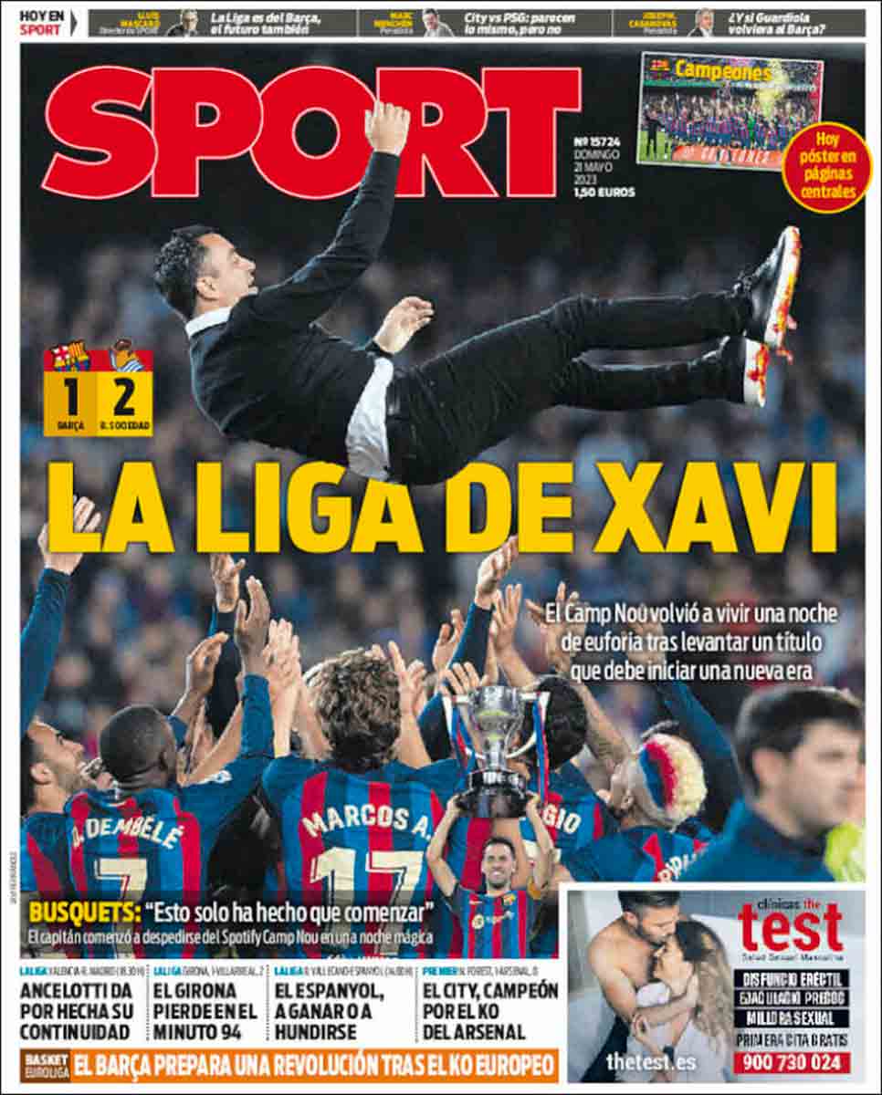 Ahí lo tienen, amics. "La liga de Xavi", "¡Oé, oé, oé!" y hasta un test para diagnosticar la disfunción eréctil ocupan las portadas deportivas catalanas sin que hallemos mención alguna a la final del trofeo más importante del baloncesto europeo. Será que Pep ha dicho que no. Será que a Pep no le gusta el baloncesto. Será que lo que diga Pep va a misa. Porque Pep también ha ganado su liga, llamada Premier League por aquello de la pluralidad que decíamos antes, pero en realidad no es más que un trasunto de otra liga para el Barcelona, como el Mundial conquistado por Argentina es otro título que agranda el ya de por sí ingente palmarés del Lobo Carrasco, cuya sola existencia como estrella del fútbol y ahora de la comunicación basta y sobra para llenar la sala de trofeos del Barcelona.