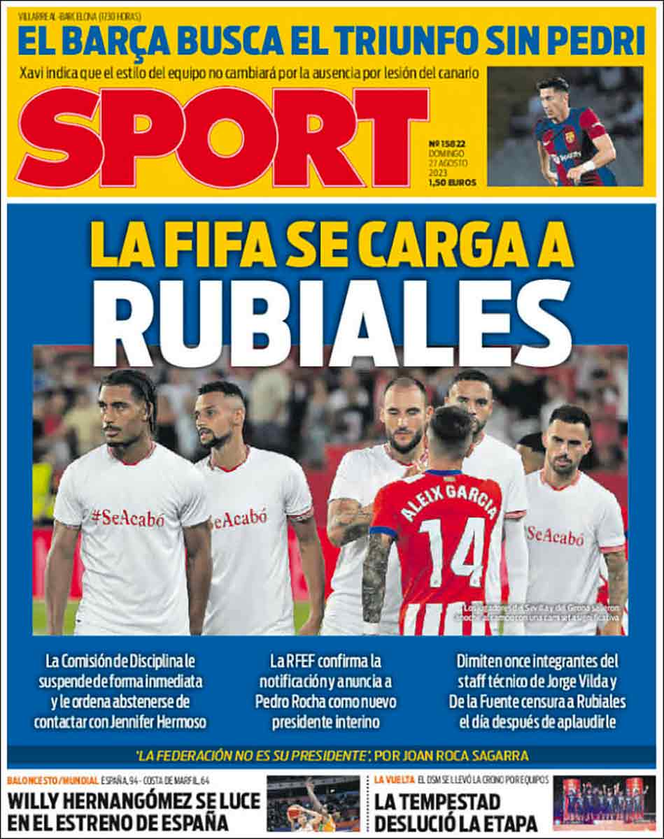 En el faldón de Sport podemos leer: «’La Federación no es su presidente': por Joan Roca Sagarra». Cierto, la RFEF es una red clientelar corrupta que es necesario desmantelar por completo y volver a erigir de manera limpia.