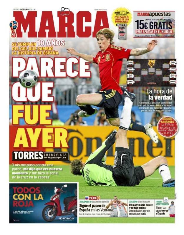 El Marca celebra una efemérides. La de "un gol que cambió la historia de España". Y nosotros deberíamos celebrar que, ante un hecho tan destacable, no les haya dado por decir "un gol que cambió la historia de La Roja"...