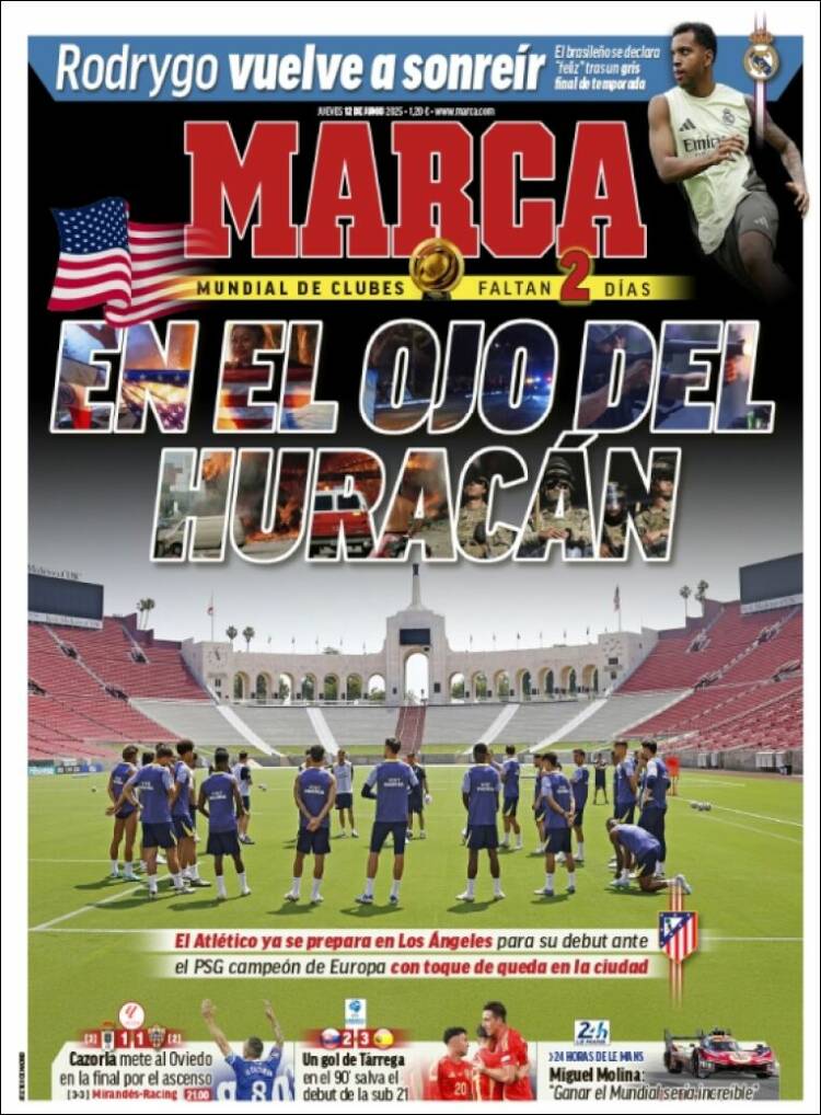 La portada de Marca refleja los desórdenes. Lo hace en plan un poco peliculero. “En el ojo del huracán”. No aclara que los conflictos no son fruto de la frustración de los cientos de miles de hinchas del Atleti en Los Angeles a cuenta del penalti con doble toque de marras. Para eso está La Galerna, para puntualizar allá donde no llega Marca. A pesar del gran predicamento del equipo colchonero en tierras yankees, los dos toques de Julián no tienen nada que ver con el pifostio californiano. Tenedlo claro.