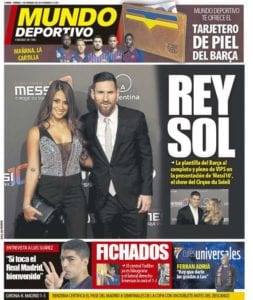 Resulta menos comprensible la horterada de titular de portada del diario de Godó , Grande de España. Pero ya saben ustedes, amigos galernautas, que por allí Leo es sol, luna, rey, reina, principito y pincho de tortilla. Lo ocupa todo.