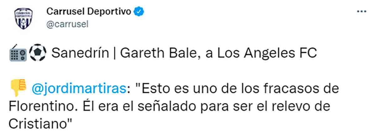 En el mismo programa estuvo, disculpad el off-topic, un señor catalán que, al hilo del fichaje de Bale por Los Angeles FC, soltó este gag digno del guitarrista del programa de Broncano.