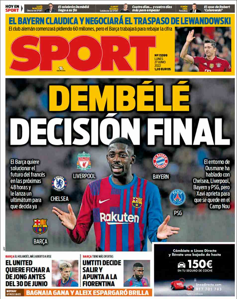 Sport anuncia que Dembélé sigue, después de tantos dimes y diretes. “Dembélé sigue después de tantos dimes y diretes” suena a título de obra de teatro pánico, y el pánico ha de ser precisamente lo que ha de haberse instalado en Can Barça al conocerse que el bullicioso punta desea, después de todo, renovar.