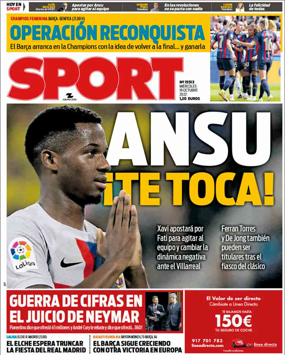 Bien que me cuesta creer algo semejante en un chico que, por lo demás, tiene una imagen pública ejemplar. Sin embargo, Sport insiste y me apremia en la revelación con signos de exclamación de apertura y cierre. "Ansu ¡te toca!" No me toque más, señor Fati.