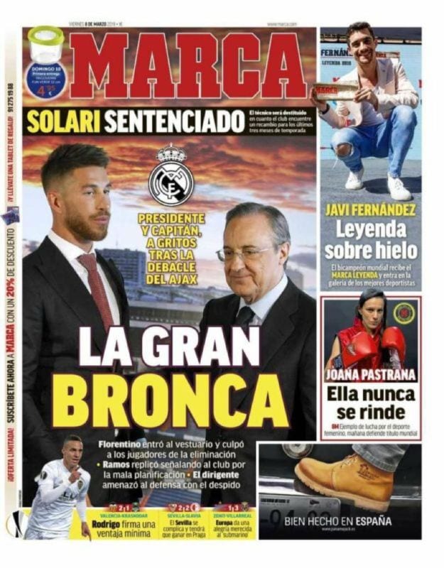 No debería ser admisible ese caudillismo, ese mirar por encima del hombro a un entrenador -o a alguno de sus ayudantes- por el simple hecho de percibir un salario tres o seis veces superior a él. Por no hablar de lo de llegar a contestar a voces y con soberbia al mismísimo presidente de la entidad tras una derrota infamante, como parece ser pasó el 5 de marzo, tras el 1-4 ante el Ajax, y que desposeyó al club, tras más de 1000 días, de la corona continental. Fue, sin duda, una situación desagradable, que se vino a sumar a anteriores desplantes como el que hizo Isco a nuestro delegado Chendo al abandonar el terreno de juego o como las supuestas faltas de respeto de las que todos hablan y nadie desmiente.