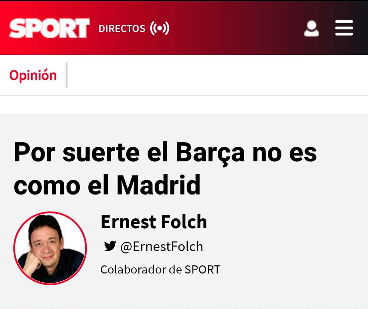 El autor del artículo es Ernest Folch, responsable de otras piezas de humor mayúsculo, verbigracia: “Por qué el Madrid está todavía peor que el Barça”, de esta temporada, ojo. El primer párrafo es una cumbre de la ciencia ficción que solo un cerebro único como el de Folch es capaz de alumbrar. La importancia de llamarse Ernesto.