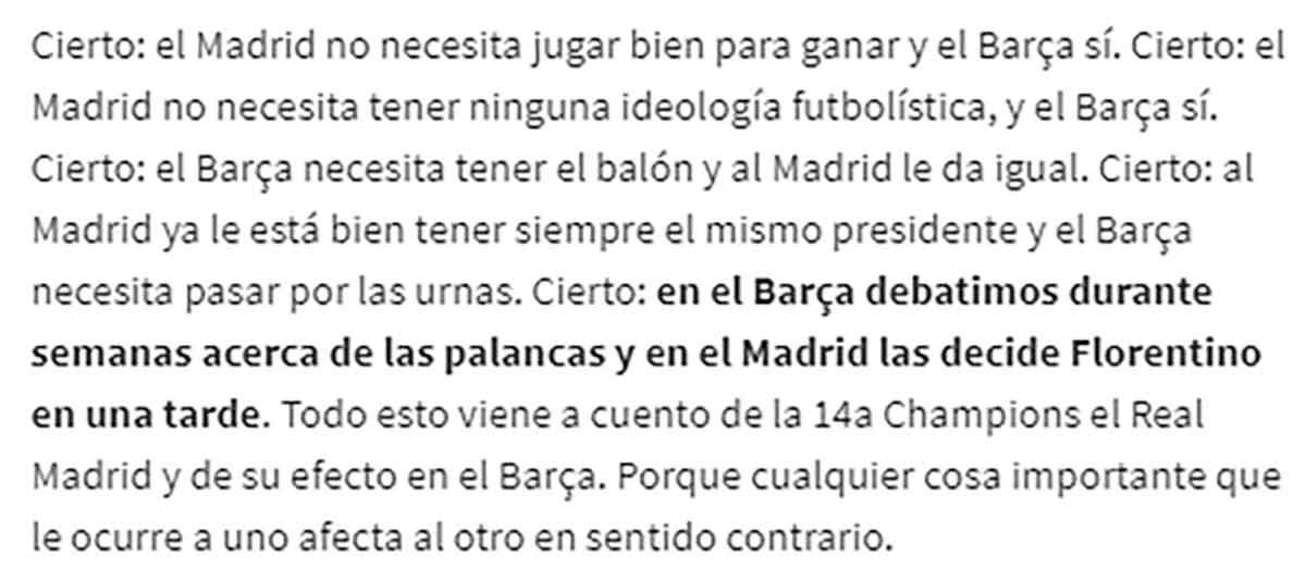 7. Lo de siempre. Restar todos los méritos posibles a las victorias del Madrid. De un periodista de un panfleto culé, es lo que se puede esperar. Lo curioso es cuando viene de un periodista de la "caverna".