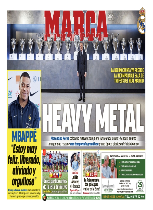 Ya os decimos por qué pasa esto: porque no pueden soportarlo, sencillamente. ¿Cómo van a soportar la imagen a la que aludíamos al principio, es decir, la de Florentino Pérez colocando la Decimoquinta en la sala de trofeos? Eso es heavy metal, como acertadamente titula hoy Marca.
