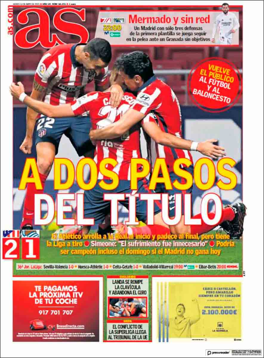 Llaman la atención las palabras de Simeone en la portada: “El sufrimiento fue innecesario”. Pues sí, Cholo, ahí te damos la razón, cuando está todo el pescado vendido, retrasar el final se considera tortura. Tal vez la Liga del suspenso también tenga intereses farmacéuticos y le venga bien que suba la venta de antihipertensivos y benzodiazepinas. Quién sabe, cualquier locura es posible en este sainete.