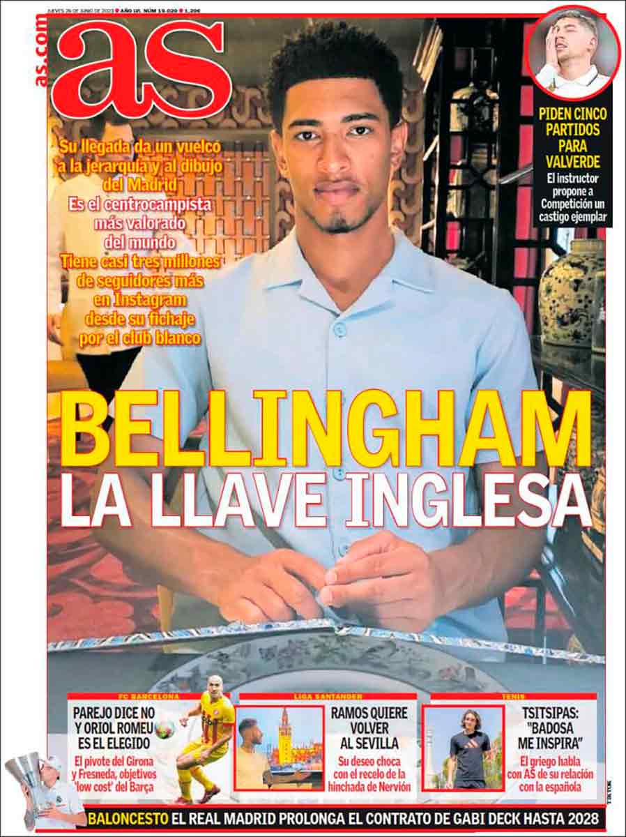 El espacio principal es para Jude Bellingham, de quien dice que es la llave inglesa. Esperamos ansiosos una futura portada en la cual, tras un derroche de pundonor de Camavinga, lo definan como tortilla francesa.