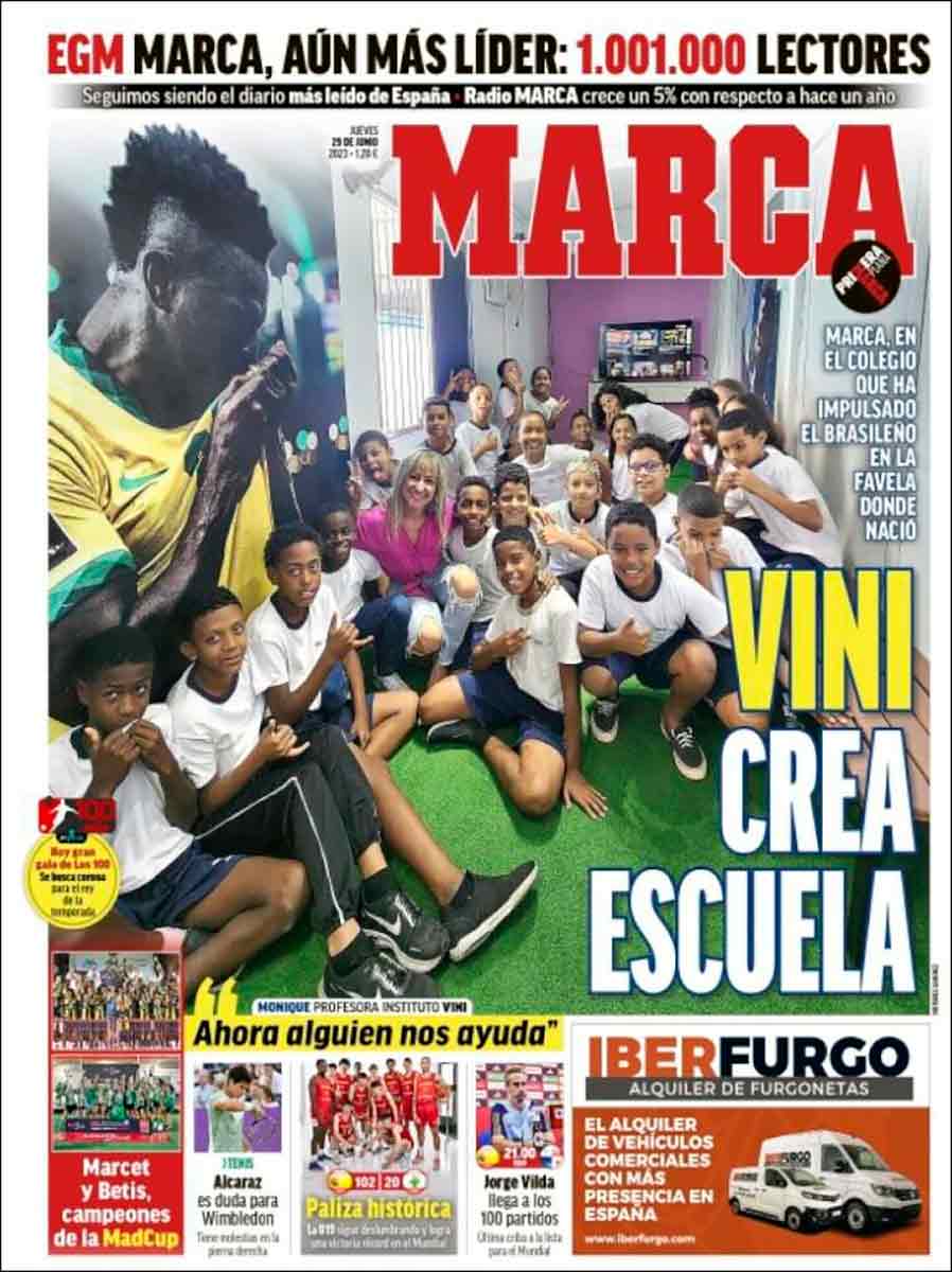 “Vini crea escuela” titula Marca y es literal, porque impulsa un colegio en la favela donde nació para ayudar a los más necesitados. Otra muestra más de que Vinícius es el demonio personificado y un mal ejemplo, ¿a quién se le ocurre dedicar parte de sus ganancias a intentar mejorar la vida de los demás?