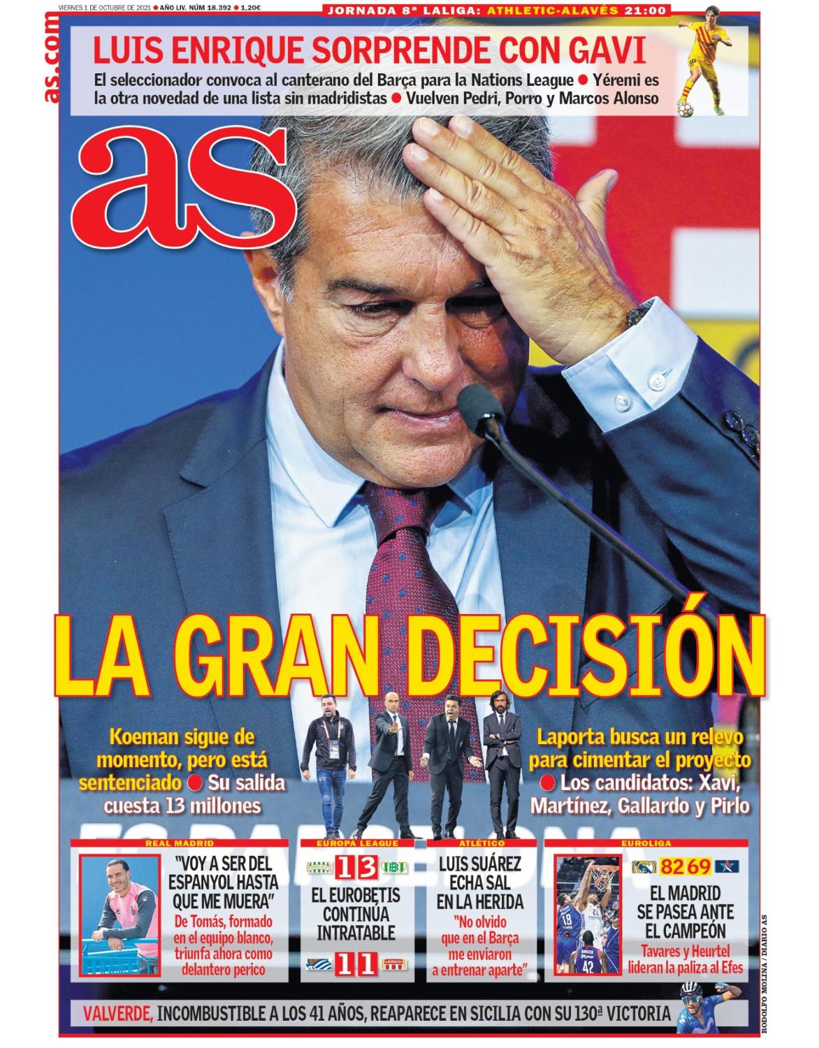 Al fin y al cabo, nadie puede pararle. El único que podría es su jefe directo, de nombre Luis Rubiales, pero claro, aquí no nos encontramos con algo grave y urgente, que merezca un despido inmediato. No es que Luis Enrique se haya comprometido para la temporada próxima con el Real Madrid, por ejemplo. Eso sí que sería para ponerle de inmediato de patitas en la calle. Luis Enrique, en cambio, está haciendo algo ejemplar: convocar a la selección a futbolistas básicamente desconocidos, generalmente incluidos en el portfolio de representados de íntimos amigos del propio Luis Enrique. “Luis Enrique sorprende con Gavi”, titula As como veréis, encima de la foto de Laporta. Bueno; a estas alturas no estamos seguros de que “sorpresa” sea la palabra adecuada.