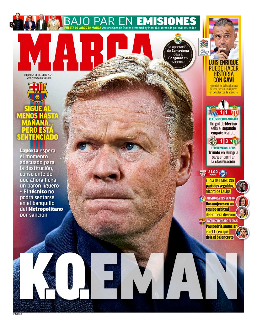 Os dejamos con la portada de Marca porque querréis verla. Ninguna de las cuatro portadas del día hace mención alguna a la lista de hechos de La Galerna.