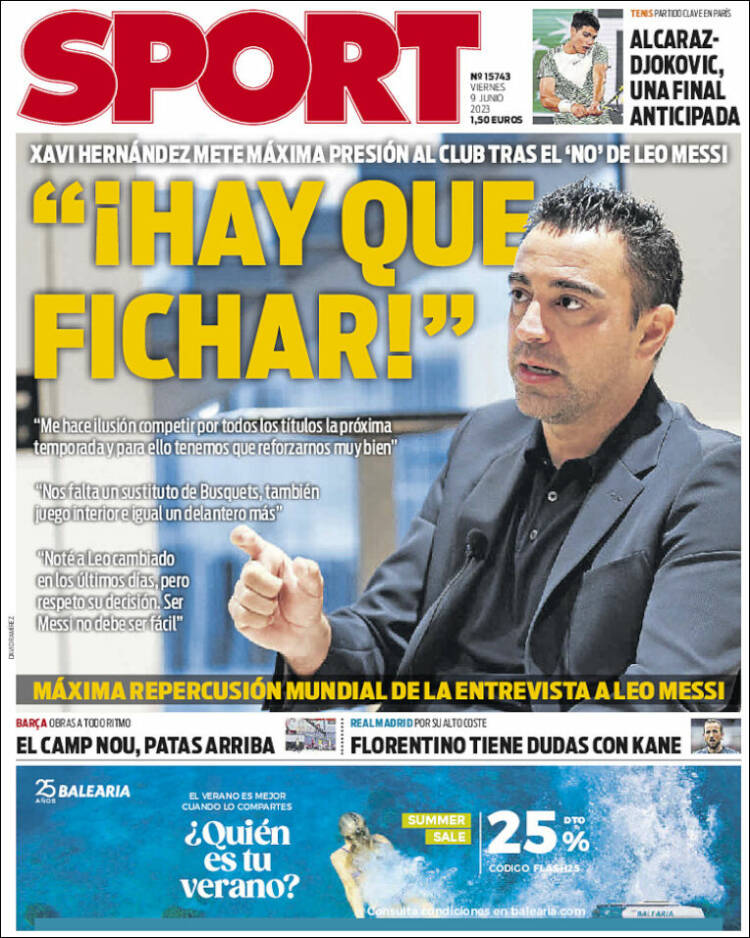 Así lo pone de manifiesto en la 'exclusiva' entrevista a Sport y MD. Aunque ambos periódicos prácticamente la ocultan, resumiendo sus declaraciones y eliminando todos los palos que da al Barsa, Laporta y Xavi. Así les quedan 25 segundos de resumen sobre casi 30 min de entrevista, claro. Son pateticos.