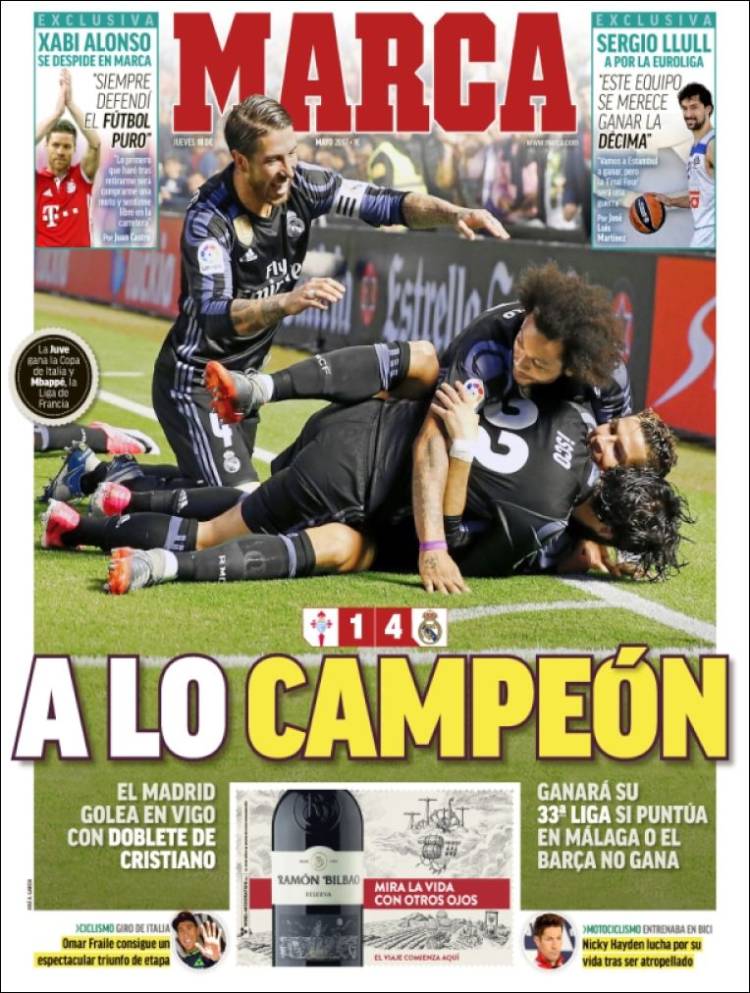También lo sabe Sport cuya edición online presentaba un inmejorable aspecto ayer al filo de la medianoche, imagen que también refulge hoy al alba. Pasen y lean: “El escándaloso arbitraje de Martínez Munuera en Balaidos”, “Un penalti de Sergio Ramos ¡termina en expulsión de Aspas!”, “Un fallo que nunca puede hacer un Balón de Oro”, “Otra expulsión perdonada a Casemiro”, “¡Le perdonan la amarilla a Cristiano!”… y un largo etcétera.