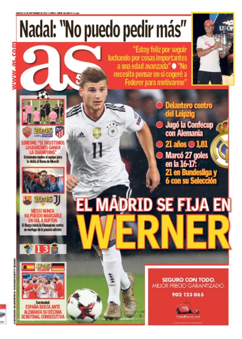 Resulta que el Real Madrid se ha fijado en Werner, un delantero del Leipzig de tan solo 21 años. Si mañana marca Cristiano dos o tres goles, la misma 'Ouija Today' le dirá a Florentino que no hace falta gol, que para eso ya está el portugués. Y así. Si está todo inventado. Sacas el rumor cuando no corresponde y te sientas a esperar. Que al Real Madrid le va mal, tú ya lo avisaste. Que al Real Madrid le va bien, vaya un irresponsable Florentino buscando delantero en septiembre. Es maravilloso.